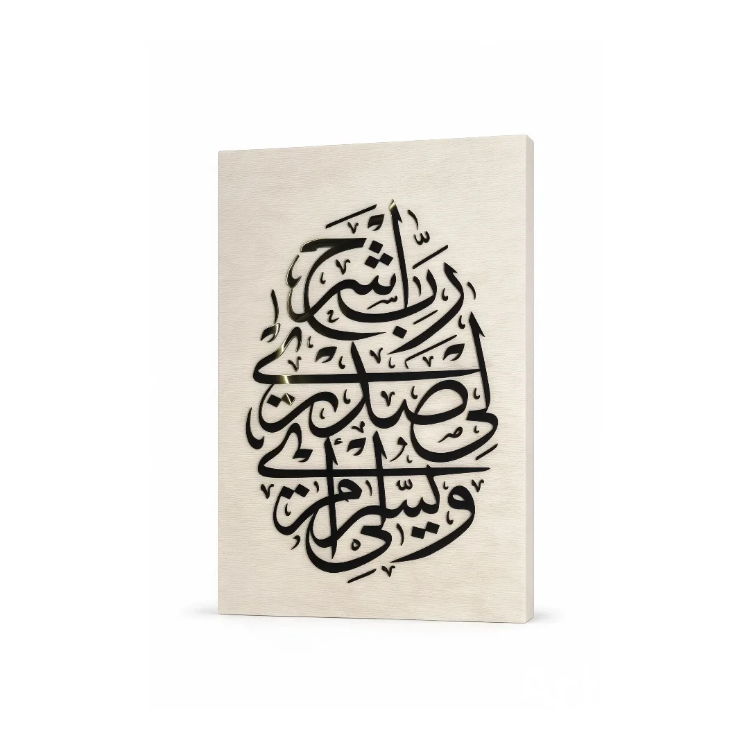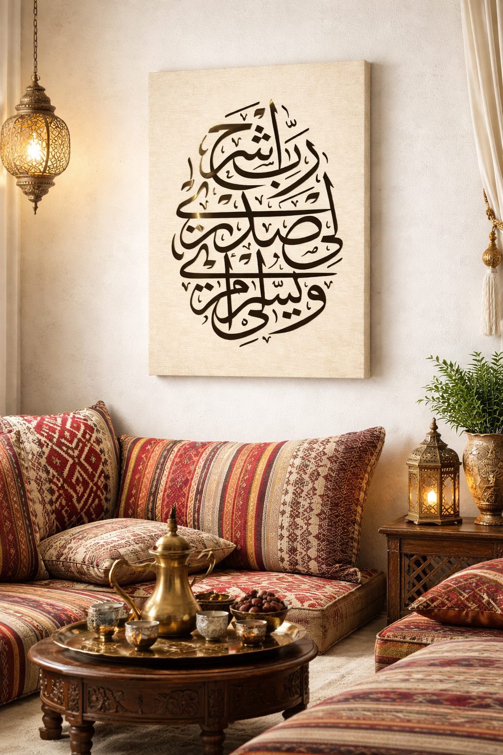 لوحات جدارية فاخرة مثل هذه القطعة تمنحك حلًا عمليًا وأنيقًا في الوقت نفسه، حيث صُممت خصيصًا لتغطية طبلون الكهرباء أو عداد الكهرباء أو لإضافة لمسة راقية في مداخل البيوت. تصميم عبارة ربي اشرح لي صدري يمنح المكان حضورًا بصريًا جميلًا بطابع روحاني راقٍ، ليجمع بين الفخامة والوظيفة في قطعة ديكور مميزة.